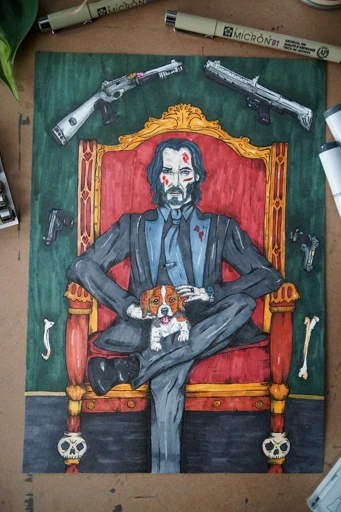 - Fineliner, graphic marker (alcohol-based), watercolor paint