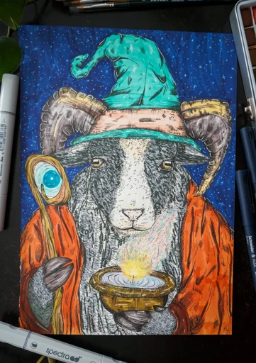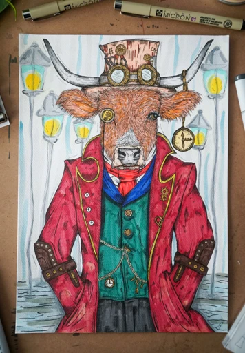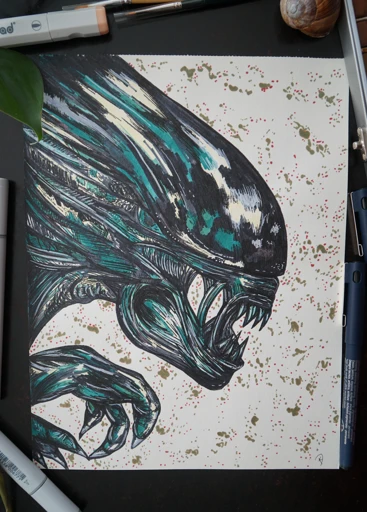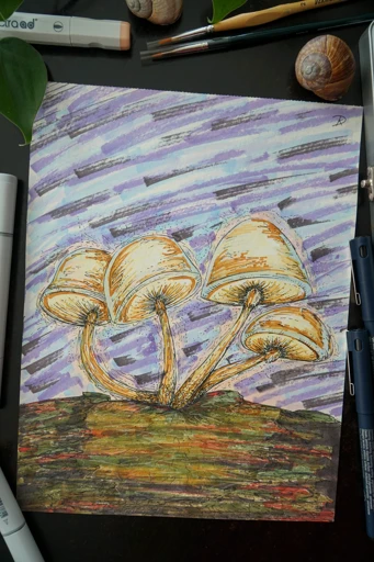 - Fineliner, graphic marker (alcohol-based), watercolor paint